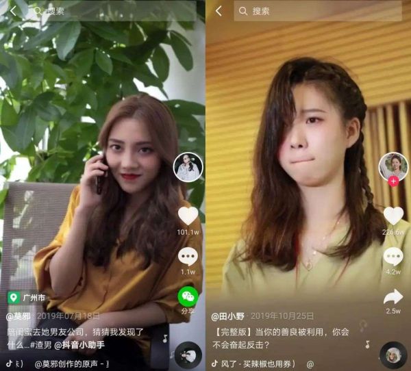 “莫邪”、“田小野”的第一个爆款视频 (图源:抖音)