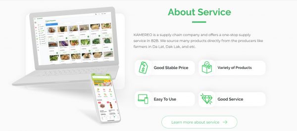 「Kamereo」的创始人Taku Tanaka在担任越南一家披萨连锁店「Pizza 4Ps」的首席运营官期间,注意到餐馆与农民联系的困难,因此萌生了创业想法。他注意到,许多小型餐饮企业没有渠道从农民手上直接大量进货,因此他们不得不依赖于附近的市场或多个供应商,而这些供应商往往只销售某一种品类。与此同时,农民与其产品的最终客户断开了联系,这导致他们很难了解市场供需变化、预测市场价格以及调节生产种植计划。为了解决这些问题,Tanaka于2018年创建了这个拥有自营仓库和最后一英里配送网络的B2B平台,并将其命名为「Kamereo」。