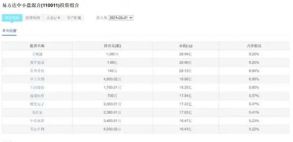 截至2021年3月31日,易方达中小盘混合买入美年健康1.88亿股,为其前十大重仓股中持股数量最多的公司,占净值比与五粮液持平,而易方达蓝筹精选持有1.07亿股,分量也不轻。