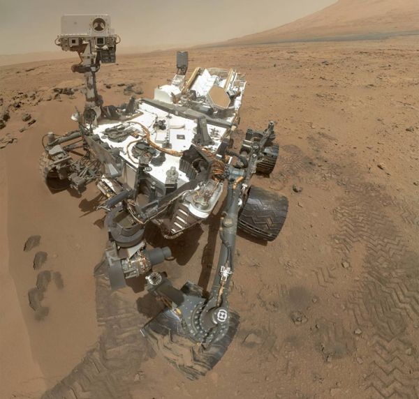 正在收集数据的好奇号火星探测器。