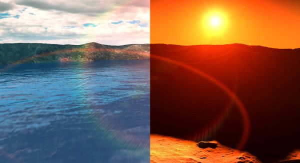 甜蜜的火星家园,艺术家的渲染图,早期的火星环境与今天的火星相比可能是什么样的。图片来源:美国宇航局戈达德太空飞行中心