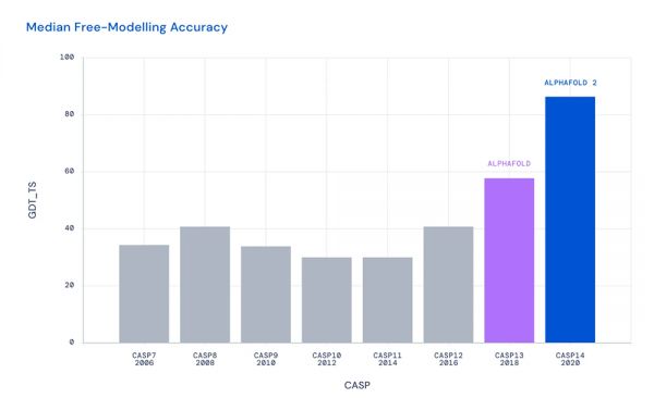 ▲DeepMind的AlphaFold软件显着提高了计算蛋白质折叠的准确性(图源:DeepMind)
