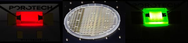Porotech 氮化镓原生InGaN红光,绿光MicroLED芯片