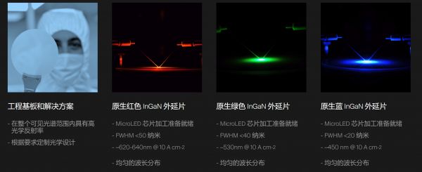 2020年11月Porotech发布了全球第一款采用多孔氮化镓技术可量产的原生红光外延片。借助团队在外延设计、LED产品的产业理解和专利布局,以及在多孔氮化镓工艺标准和量产参数方面的积累,现阶段Porotech可以实现基于蓝宝石衬底和硅基衬底两个主流的衬底技术的工业化衬底产品,以及红、绿、蓝单色外延片的小规模量产。产品规格范围2到8英寸,12英寸硅基也在规划中,且与欧洲、北美、亚洲等多家大型行业客户实现复购。