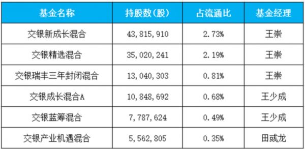 与一季度相比,持股数量从0.97亿股,增加至1.16亿股,增加了0.19亿股;占上市公司流通股本的比例,也从6.07%提升至7.25%。