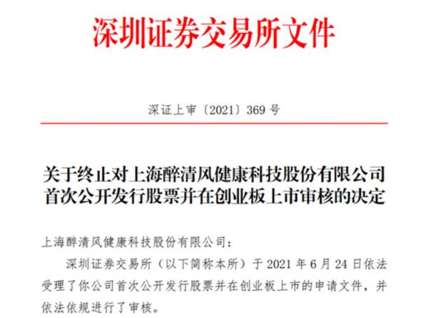 7月19日,醉清风向深交所提交了《上海醉清风健康科技股份有限公司关于撤回首次公开发行股票并在创业板上市申请文件的申请》。