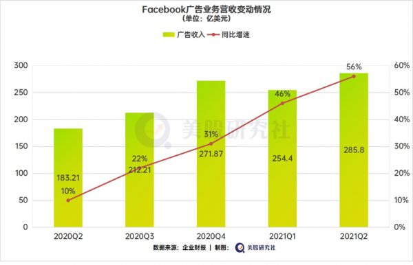 美东时间7月28日美股盘后,Facebook公布了2021财年第二季度财报,以285.8亿美元的广告收入带动总收入大涨56%至290.8亿美元。
