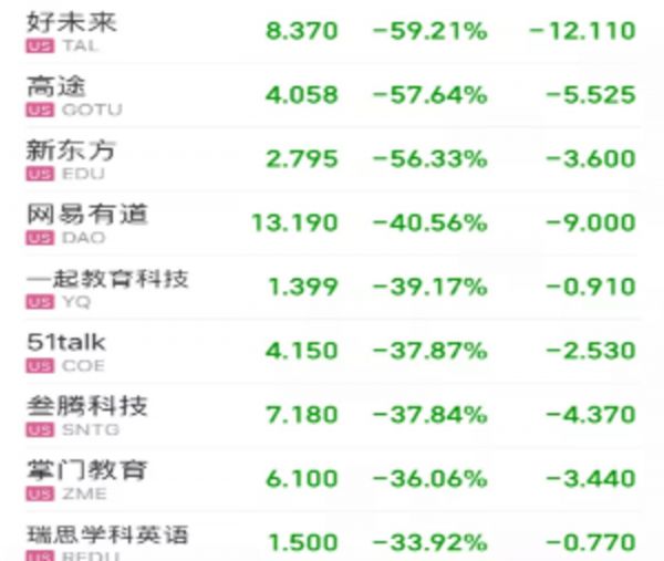 7月23日下午,港股上市的“新东方”,股价暴跌40%有余;23日晚,风暴席卷美股上市的所有互联网教育股票,“好未来”、“高途”、“新东方(美股)”单日跌幅均超过50%。