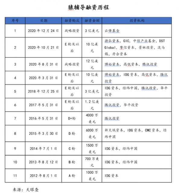 仅2020年一年时间,“猿辅导”就完成了三轮融资,总融资金额高达32亿美元!估值也从2018 年 12 月 F 轮融资后的30 亿美元飙升至155亿美元。