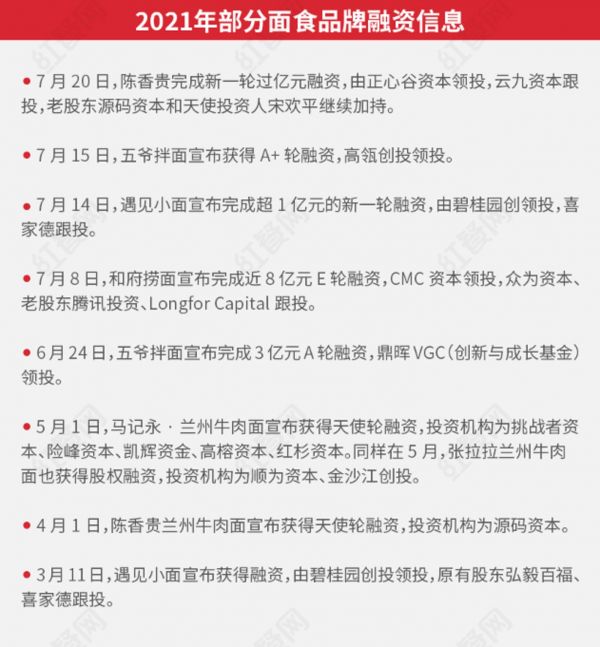 “永定门电烤串”宣布完成千万元级天使轮融资;“懒熊火锅”获得数亿元A轮融资;“和府捞面”单轮融资8亿元,刷新连锁面馆的最高融资纪录;兰州牛肉面品牌陈香贵已完成新一轮过亿元融资,五爷拌面刚完成了一轮估值3亿人民币的A轮融资,遇见小面、马记永兰州牛肉拉面也纷纷发布高额融资消息……过去几个月,餐饮类赛道捷报频传。最夸张的是来自某面食连锁企业,其面积几平米的单店估值高达千万元以上,意味着这家店卖100年的面条也赚不到这份天价估值。