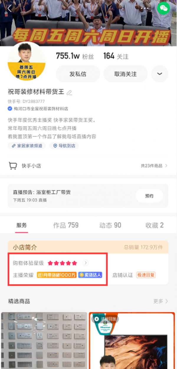 截至今日,祝哥不仅在快手上获得“卖货达人”称号,商品总销量更是达到172.9万件。