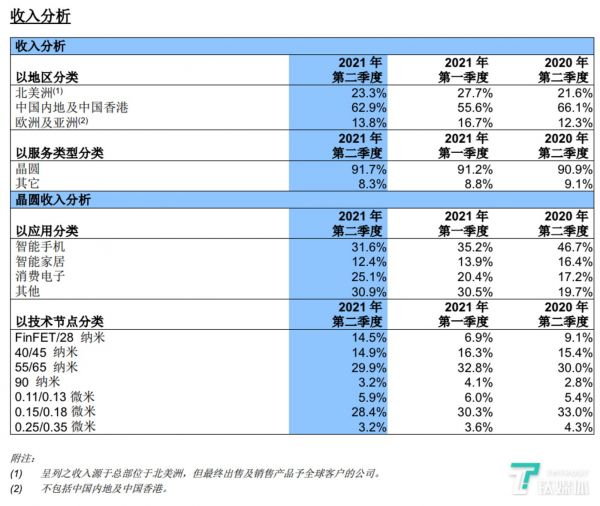 中芯国际在财报中服务类型收入、按应用划分的收入、各地区的营收贡献以及不同工艺节点的营运份额披露了本季度营收状况。