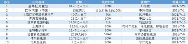 此处36氪重点分析7月国内并购交易额TOP 10的并购事件。
