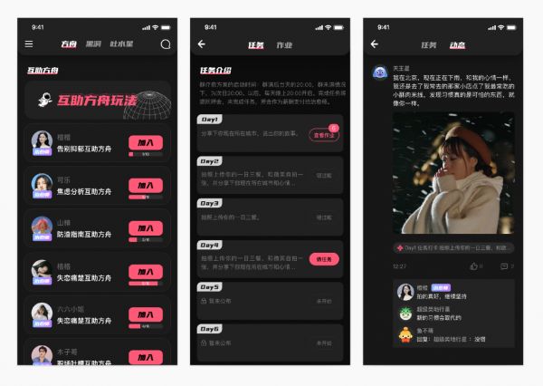 社交产品往往通过广场分发、匹配等模式快速建立陌生人间的联系,吐水星发起联系的途径则是情感互助和心情状态。进入吐水星星球,每个用户会被分配一个匿名的行星身份,分享此刻心情状态或求助话题到宇宙中,则会成为发起者,快速建立起群聊,也可以以情感经历丰富的参与者身份加入感兴趣的话题,为用户间提供互帮互助,解决情感/心理困惑。