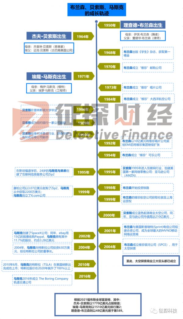 布兰森、贝索斯、马斯克的成长轨迹 秦悦制图