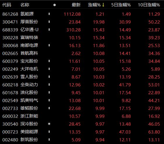 11只氢能股涨停,谁会是万亿市值“氢茅”?全柴动力称,大规模商业化还早