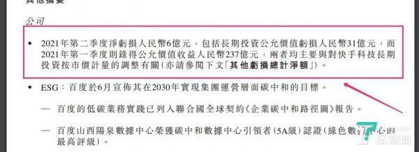 不过,值得注意的是,财报显示,该季度归属于百度的净亏损为5.83亿元,上年同期净利润为35.79亿元。其中,百度其他亏损总计净额为人民币24亿元,包括长期投资公允价值亏损人民币31亿元。百度表示,这主要由于快手在港股的股价持续下跌,市值缩水,使得百度对其长期投资价值有所调整有关。