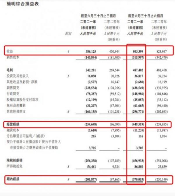 具体来看,其上半年营收为8.03亿元,同比下滑2.5%。经营亏损4..49亿元,同比扩大87.3%。期内亏损3.70亿元,同比扩大60.9%。