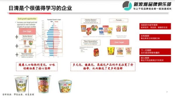 日清年报显示,随着日本人口结构从纺锤形向倒金字塔型转变,它的主力消费群体也正从中青年男子往中老年人群转变。