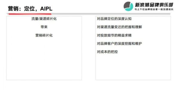 流量碎片化带来营销碎片化营销我们借鉴了天猫的方法,叫做AIPL(Awareness认知、Interest 兴趣、Purchase 购买、Loyalty 忠诚)。