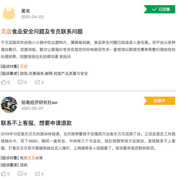 口碑崩塌是贝店走下坡路的一大原因。黑猫投诉上,可以看到大量关于贝店产品质量堪忧、售卖假货、退货服务差的评论。“电诉宝”也对贝店2021年上半年的整体表现给出了“不建议下单”的消费评级。