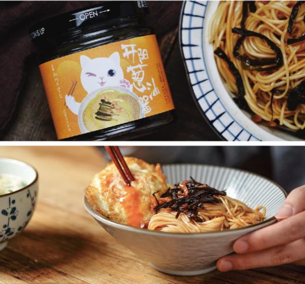以首款产品葱油酱为例,陈竹聿介绍道,当时葱油拌面这期视频的数据表现非常好,很多粉丝都在问哪里可以买到,且市面上同款产品较为空白,所以团队开始研发可以即食的葱油酱配方,并与供应链沟通,最终花费半年时间推出产品,也以此切入了复合调味酱料以及粮油米面赛道。