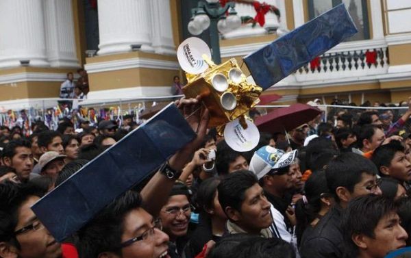 “玻星”发射成功后,走上街头庆祝的玻利维亚人民