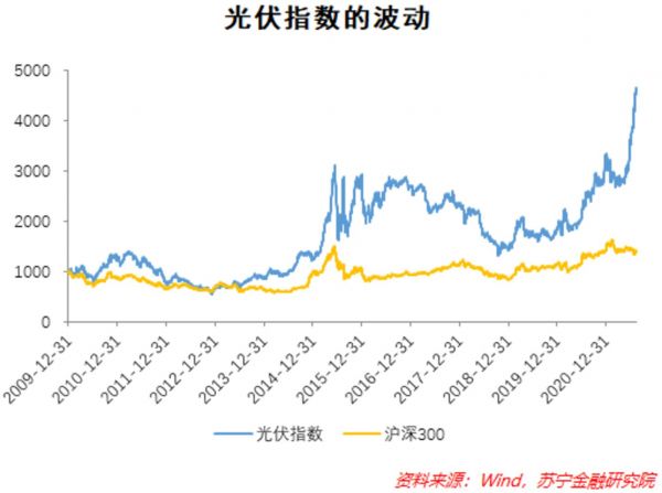 今年以来新能源板块持续火爆。与新能源密切相关的光伏板块也成为当前热门的主题。在2018年双碳承诺尚未提出的时候,光伏产业就开始得到市场认可,wind光伏指数自2018年10月份触底后便波动式上行,2021年4月后,光伏指数直线上行,涨幅达到67%。