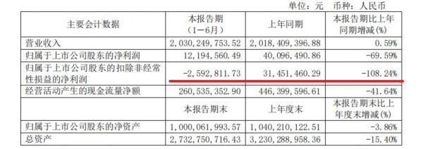 更严重的是,新日股份的“扣非”归母净利润为-259.28万元,同比下降108.24%,这是新日股份上市以来半年报首次出现“扣非”归母净利润亏损。
