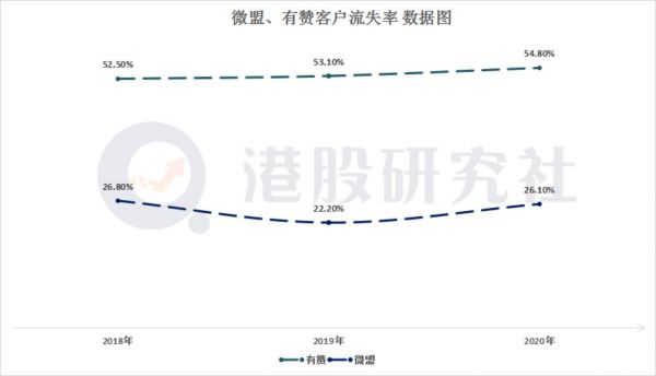 不过,从近些年,微盟的付费商家流失率来看,处在一个很高的水平,2018-2020年,微盟付费商家流失率分别为26.8%、22.2%和26.1%。尤其是今年初,微盟提高了SaaS产品各种套餐版本的价格,有分析称,后续流失率或将进一步上升。