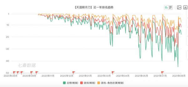 本季度,《天涯明月刀手游》多次更新资料片,畅销榜排名一度位列TOP3仅次于王者、和平。