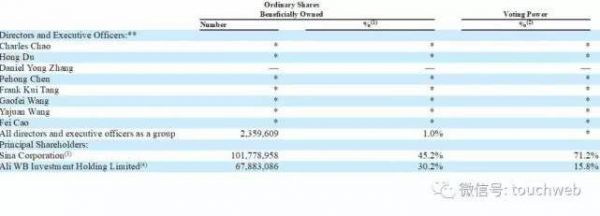 雷帝触网消息显示,今天(5月5日),微博向美国SEC递交的文件显示,截至3月31日,新浪为其第一大股东,持有45.2%股权,拥有71.2%的投票权;阿里持股为30.2%,为微博第二大股东,拥有15.8%的投票权。