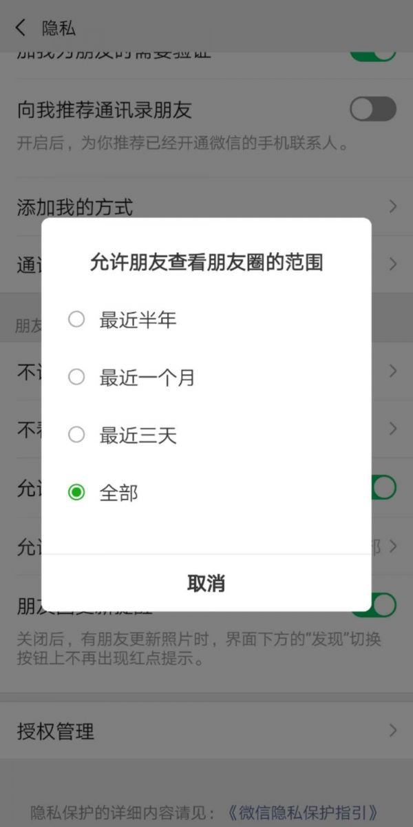 上班归来,发现微信又有了新功能——“一个月可见”。