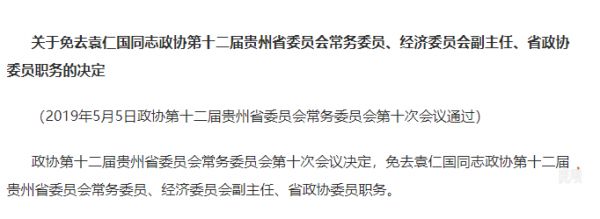茅台原董事长袁仁国被免去贵州省政协委员等职务