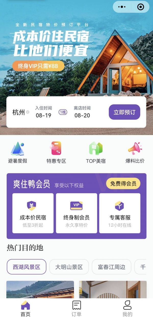 近日,该团队推出乡村民宿折扣返利平台「爽住鸭」。用户付费成为平台会员后,能以传统OTA价格的2.5-5折预订民宿。民宿主方面,爽住鸭代运营也能在消化库存的同时帮助民宿“出圈”。创始人徐建军告诉36氪,区别于Airbnb这类抽佣平台,爽住鸭的目标是做民宿界的Costco,以会员平价入住模式整合优质房源与优质渠道。