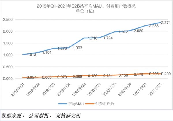 本季度B站月均活跃用户达2.371亿,同比增长38%,平均每月付费用户为2100万,同比增长62%,付费率达8.8%。
