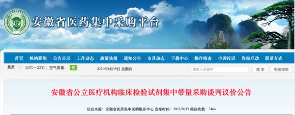 日前,安徽省医药集中采购服务中心公告开展临床检验试剂集中带量采购谈判议价。采购产品范围主要为部分临床用量较大、采购金额较高、临床使用较成熟、市场竞争较充分的化学发光检验试剂。