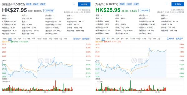 但资本市场的反应却是各有不同,次日港股开盘,海底捞股价一度跌幅5.72%,但九毛九股价涨幅却达到5.6%。