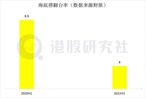 这也反馈在翻台率层面,期内,海底捞翻台率处在下滑阶段,仅达到3.0。事实上,这也与快速扩张门店有关,过度扩张门店爬坡期拉长,短期内经营效益不佳,另外,高密度的门店数量加速了门店分流,这也使得翻台率提升较缓。