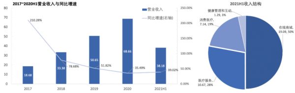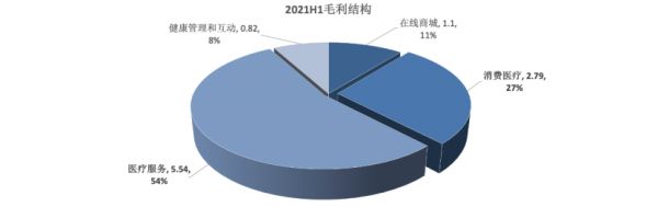 再看医疗服务业务,虽然在收入上不及在线商城,但盈利能力却明显更强,2021H1的毛利率高达51.9%,所以医疗服务是目前为公司创利最多的业务。