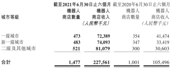 机器人商店铺设数量与2019年底的825间相比已经近乎翻倍,但收入占比却一路下滑,从2018年的16.8%,到2019年的14.8%,到今年上半年降至12.8%。
