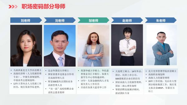 据创始人介绍,为了打造高质量的简历指导服务,「职场密码」招聘和筛选老师的过程较为严格。老师应聘需进行在线学习并参加考试,并通过模拟案例反复操练,连续5单顺利通过质检老师审核才可成为核心导师。创始人补充道,去年「职场密码」招聘过程中淘汰率高达80%。目前该公司职业简历师团队平均拥有近10年工作经验,其中硕士及以上学历的教师占比近20%。