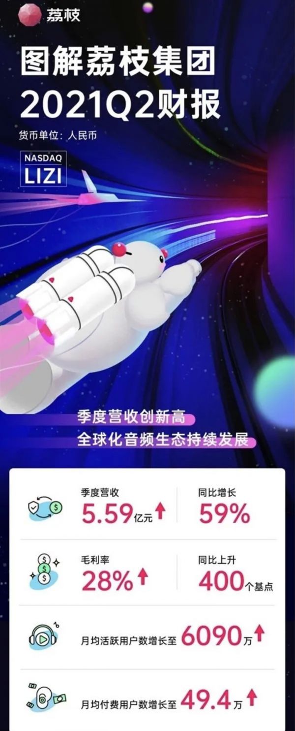 美国东部时间8月30日(北京时间8月31日)美股收盘后,“中国音频第一股”荔枝发布了2021年第二季度未经审计业绩报告。