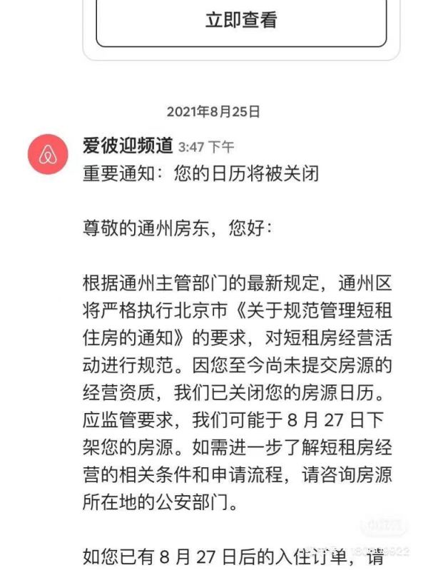 实际上,这一消息并不突然。8月22日,通州融媒发布了一则新闻,称为响应 2020 年 12 月 24 日发布的《关于规范管理短租住房的通知》,通州区组织市区各部门,联合召开规范短租住房经营管理工作部署会,面向途家、爱彼迎、去哪儿、小猪短租、同程艺龙、携程、美团、木鸟、飞猪等 9 家短租住房平台进行了政策宣贯, 不合规房源将在 7 日内完成下架。