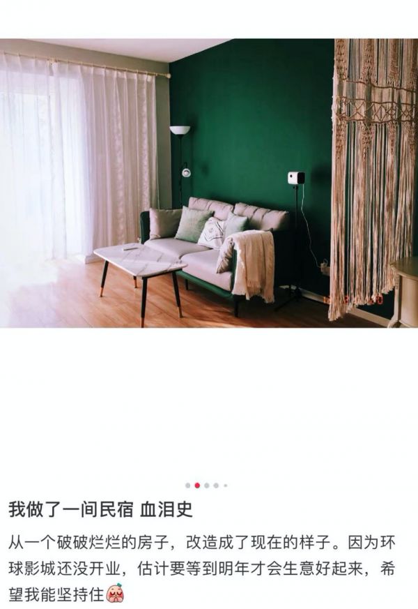 不过,民宿群里比她「悲惨」的大有人在。有人刚刚拿了一百套商住,有人装修到一半,而莉君的朋友更是一单没开。「每天一睁眼都是负债,光装修就花了10万元。」本想趁着在环球影城开业前尽快入场家具, 如今她还没考虑好是退掉刚订好的床和沙发,还是退掉五年的租房合同。