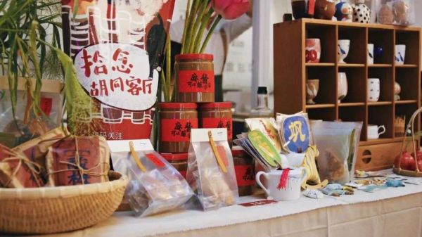 网红二八酱、紫苏青梅酒咖啡、红石榴冰箱贴、艺术家手工摆件,Abby开始带着胡同客厅的元素参加市集。