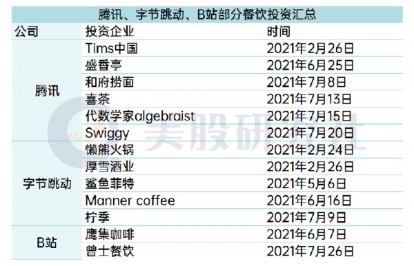 这其实早已超越了投资最朴素的“人有我无故投之”的思想,比如腾讯、字节跳动等今年也纷纷入场餐饮行业,腾讯投资了喜茶、盛香亭新式热卤、和府捞面等,字节跳动也投资了鲨鱼菲特、懒熊火锅、柠季手打柠檬茶等。
