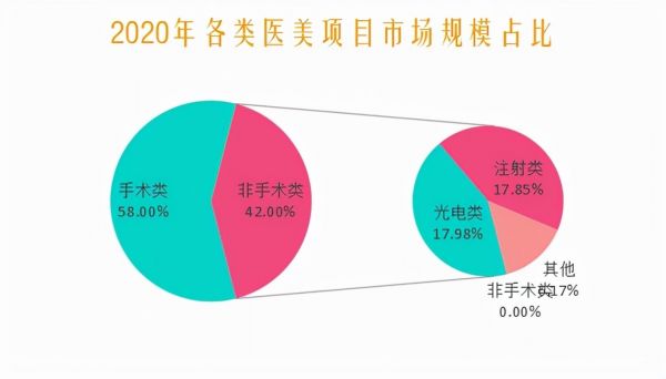 根据新氧发布的《2021中国医美抗衰消费趋势报告》及新氧数据颜究院的调查显示,2020年轻医美(非手术类)在整个医美市场占比42%。其中光电类、注射类作为轻医美中最受欢迎的项目,占比分别为17.98%、17.85%。以今年6月为例,注射美容、光电类为主的皮肤美容消费同比增长分别高达41%、39%。