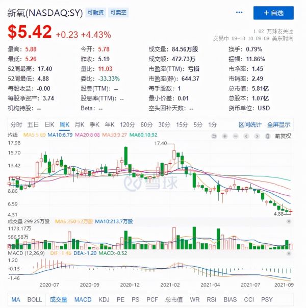 截至美东时间9月10日10:09,报收5.42美元/股,总市值已经跌到5.81亿美元。