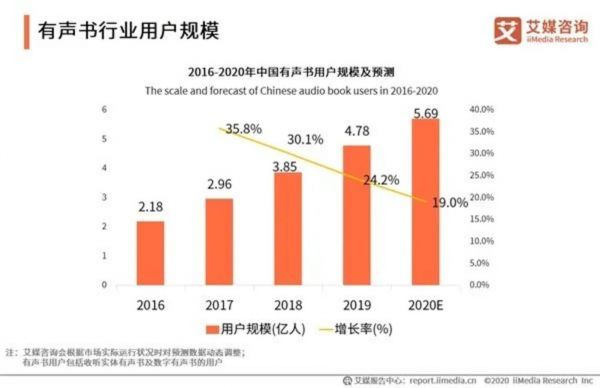 不仅受高薪吸引的从业人员,其规模在不断扩大。关于整个有声书市场,有更直观的数据显示,从2019年12月全国性的新冠疫情爆发以来,线下消费受限,线上消费快速增长,2020年有声书行业得到进一步发展,到2020年有声书市场规模达到95亿元。